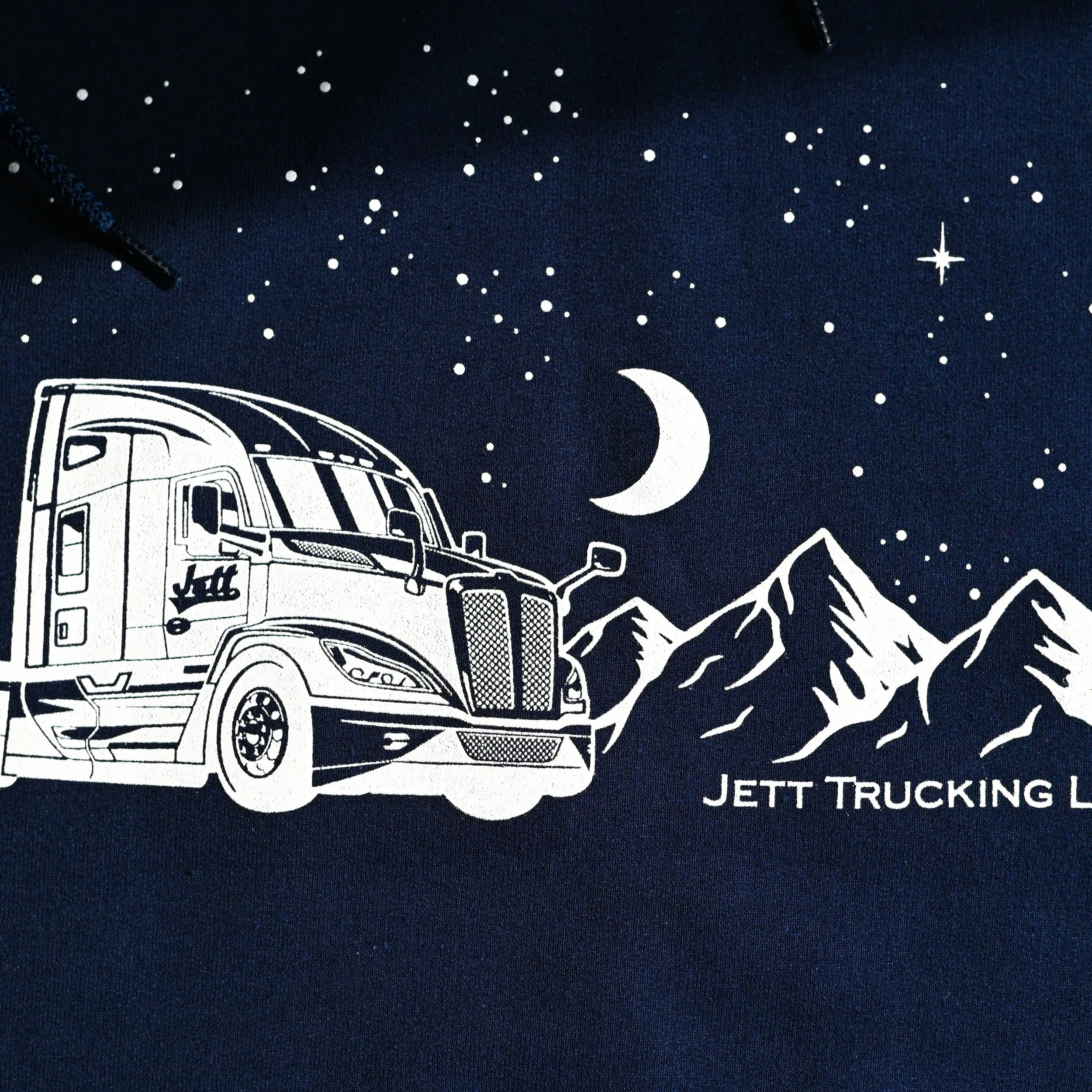 Employee Store › Jett "Mountain" Hoody Image 1 of 4 Image 2 of 4 Image 3 of 4 Image 4 of 4 Jett "Mountain" Hoody $30.00 Fleece hoody featuring Jett Trucking “Mountain” artwork Color: Select Color Black Navy Size: Select Size Small Medium Large XL 2XL 3XL 4XL 5XL Add To Cart Added! Fleece hoody featuring Jett Trucking “Mountain” artwork